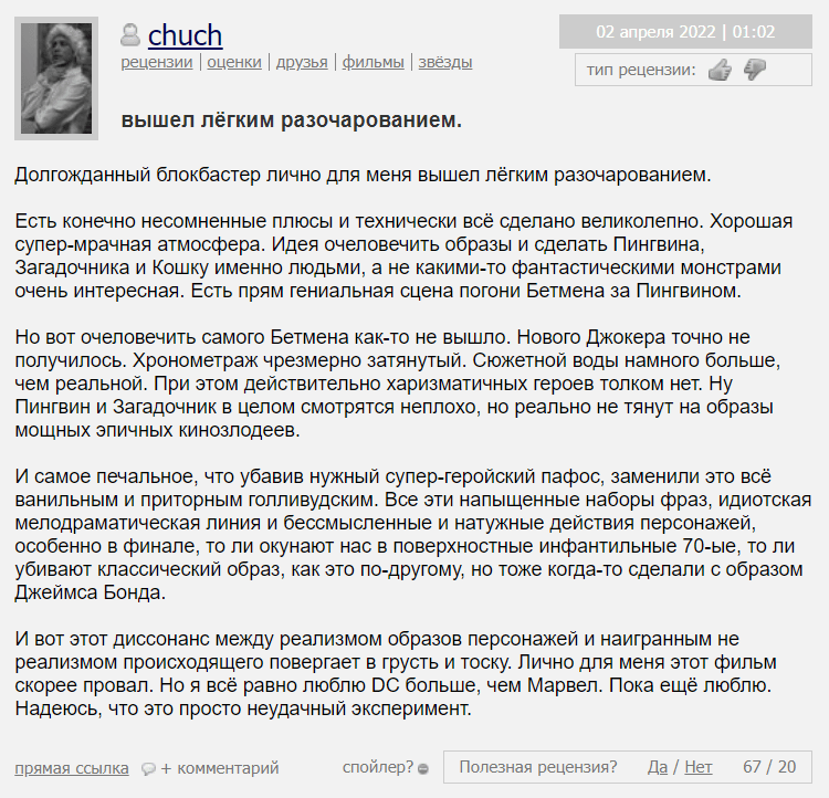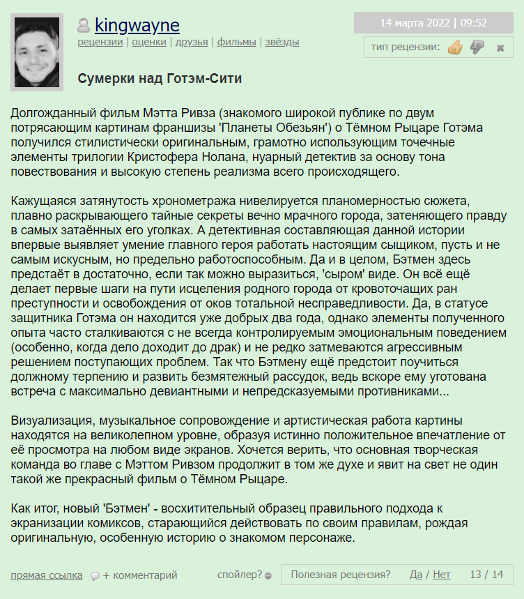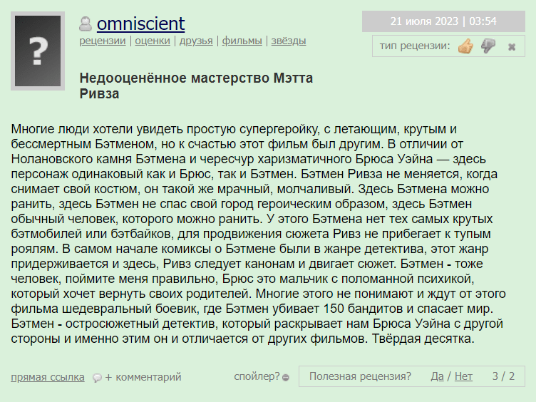 «Бэтмен» — Отзывы и Рецензии Зрителей о Всех Фильмах Кинофраншизы